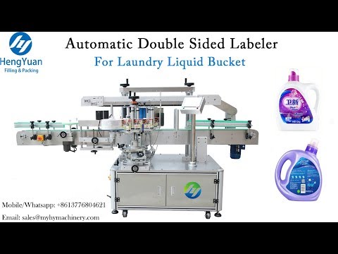 Double side labeling machine URL: http://www.myhymachinery.com/Automatic-Front-and-Backside-Sticker-Bottle-Labeling-Machine-p15.html