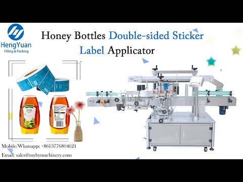 █Automatic HONEY flat bottles double-sided sticker labeling machine Video link: https://youtu.be/yfb6HTOn52c